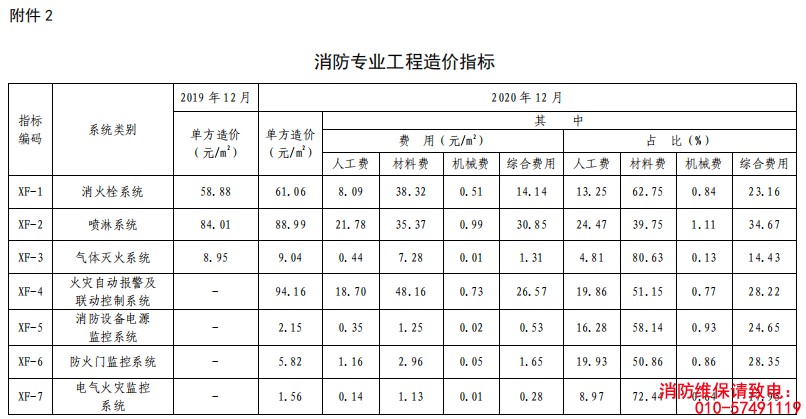 注:1.本表中各造价指标适用于公共建筑的消防专业工程,单方造价单位中的m2指总建筑面积。
